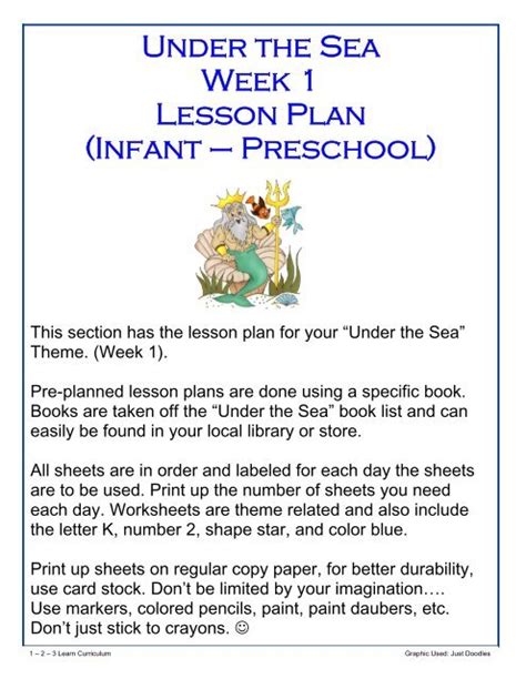 Download online Under The Sea Week 1 Lesson Plan Infant Preschool rtf